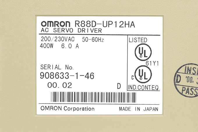 オムロン ACサーボドライバ R88D-UP12HA (ソフトVer005・00年2月製)