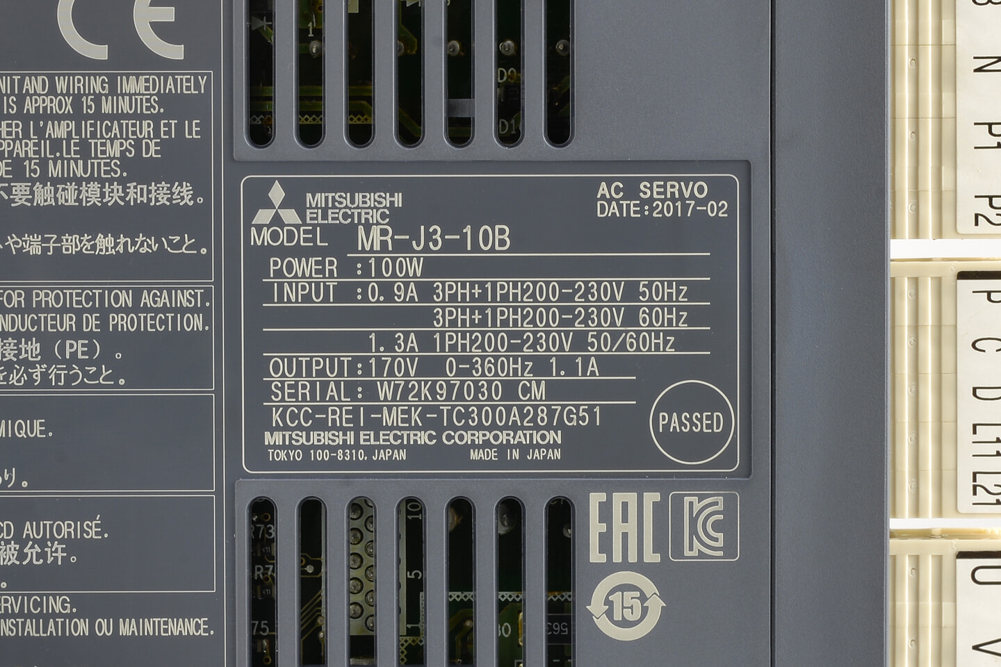 三菱 ACサーボアンプ MR-J3-10B (電源ON累積時間22931h)