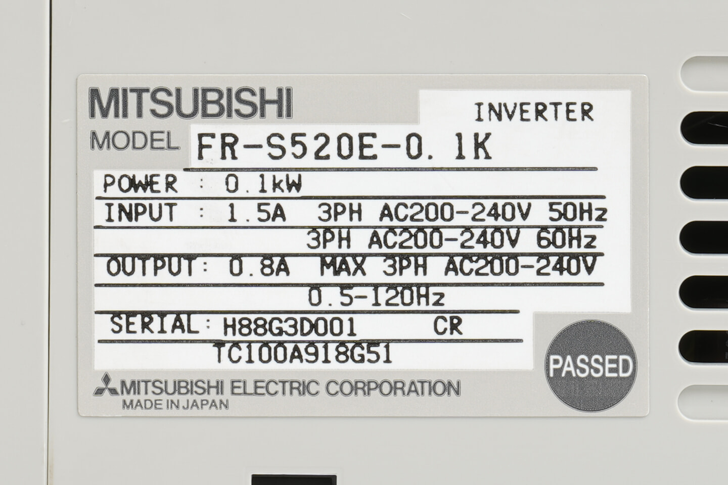 三菱 インバータ FR-S520E-0.1K (08年製・割れ)