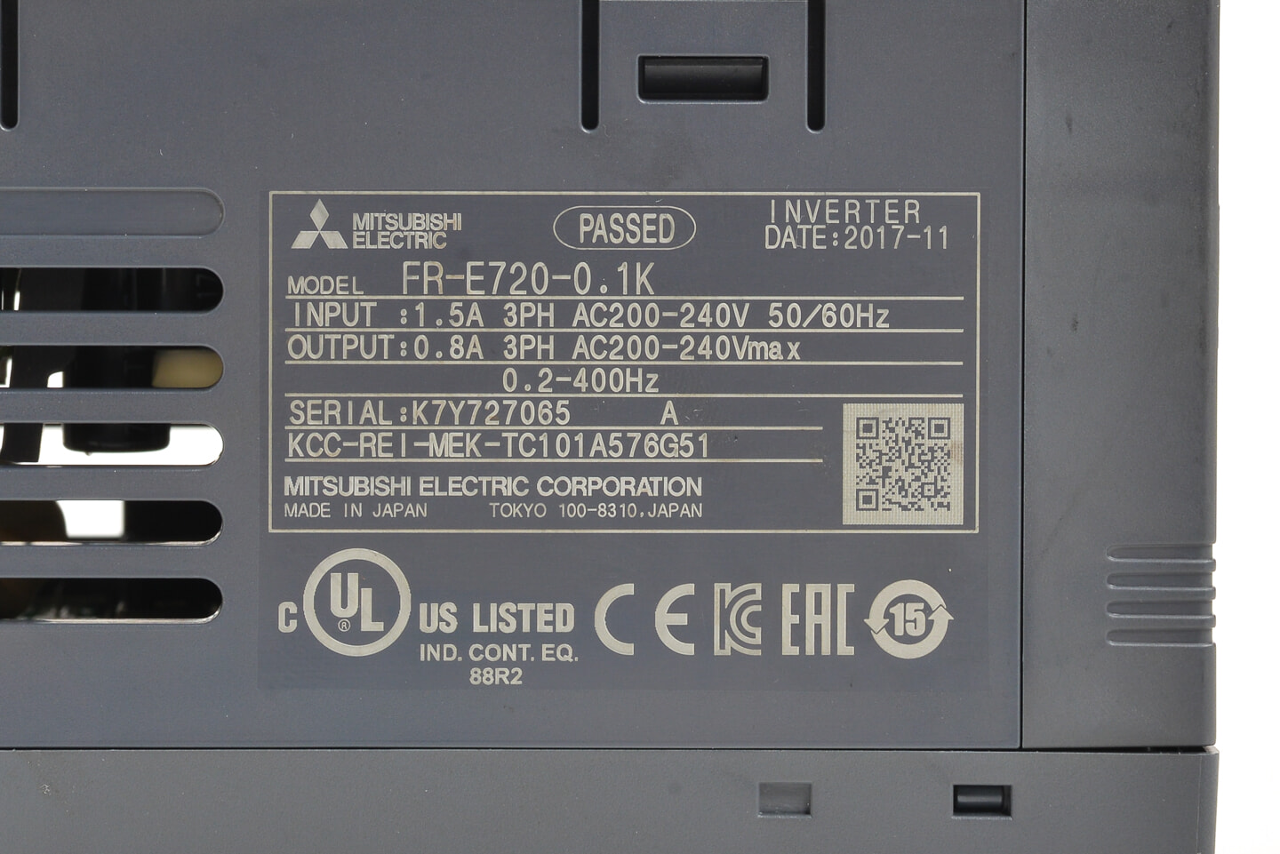 三菱 インバータ FR-E720-0.1K (通電時間124580h)