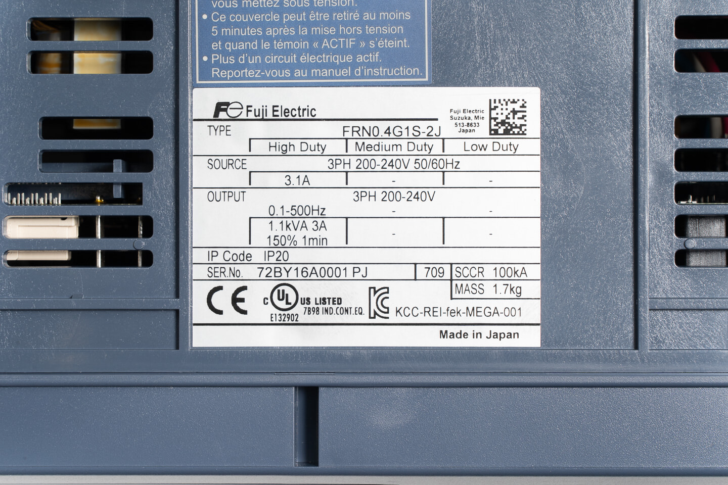 富士電機 インバータ FRN0.4G1S-2J (累積運転時間3386h)