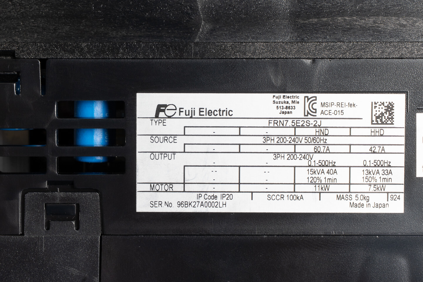 富士電機 インバータ FRN7.5E2S-2J (累積運転時間1h)