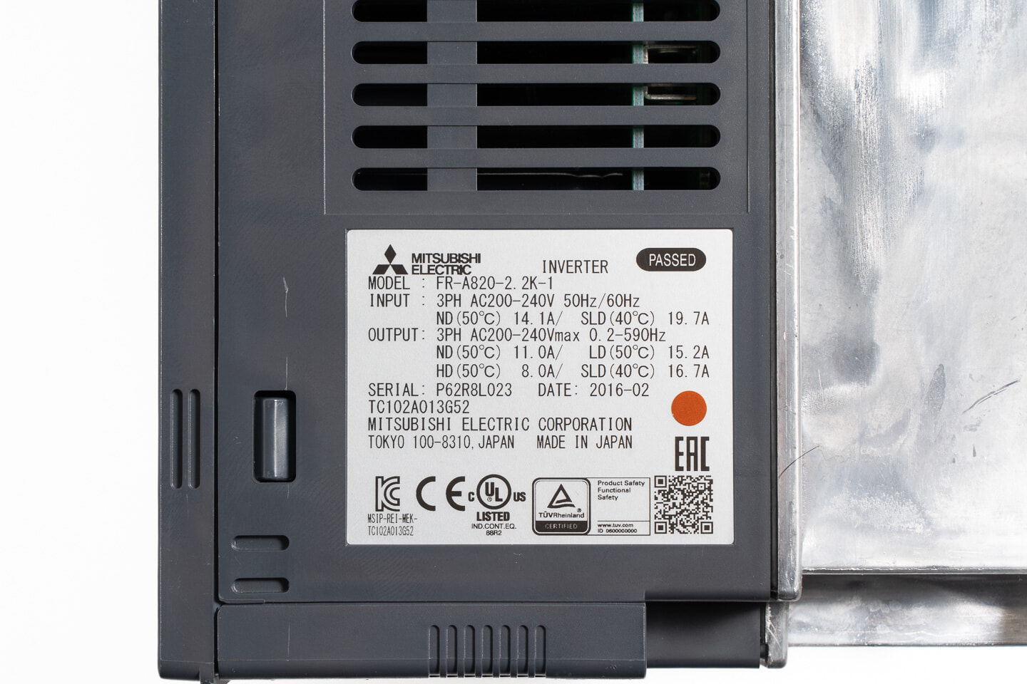 三菱 インバータ FR-A820-2.2K-1 (通電時間41070h・CC-Link)