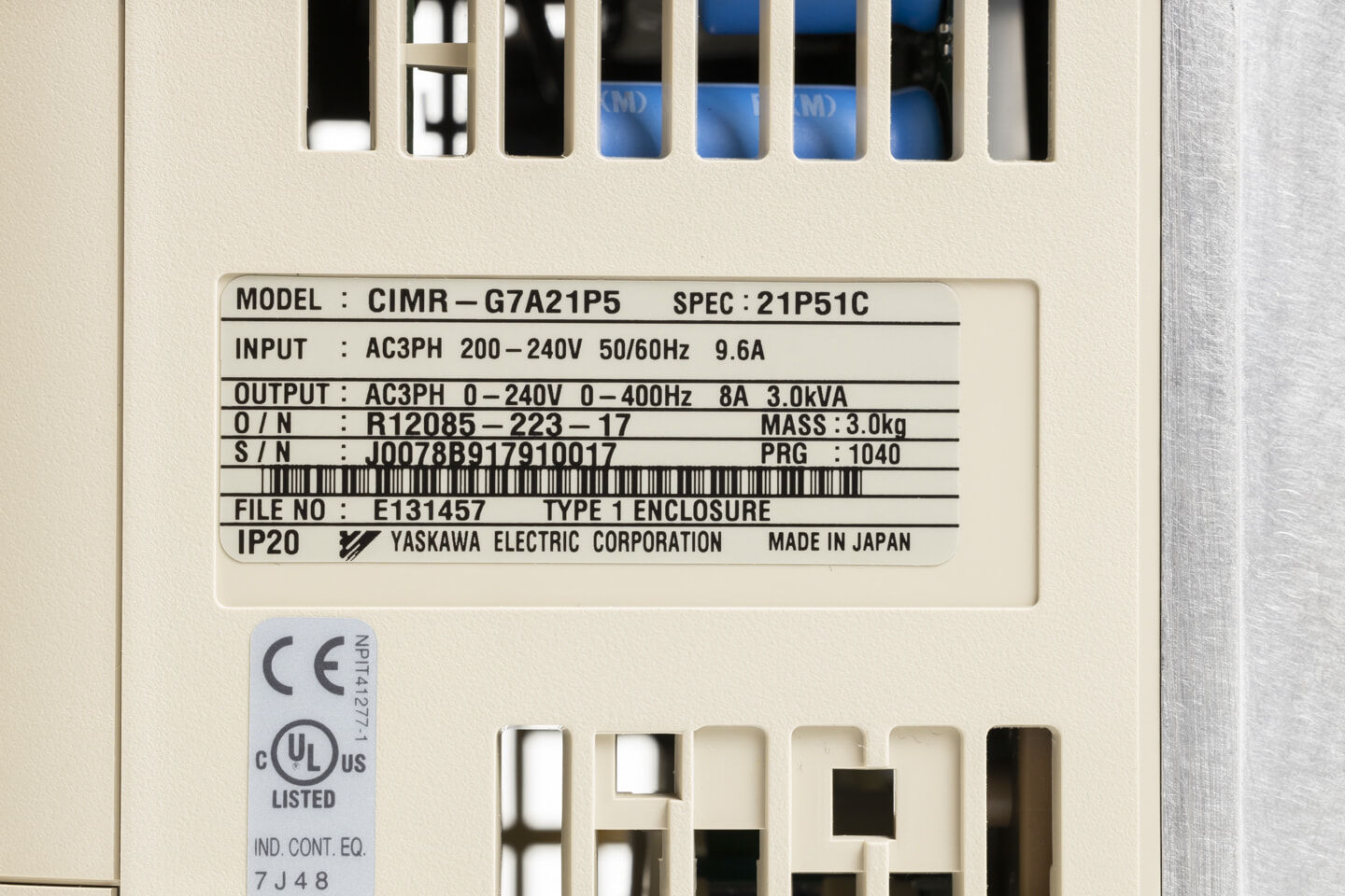 安川電機 インバータ CIMR-G7A21P5 (累積稼働時間49682h・ソフトVer1039・カバー加工)
