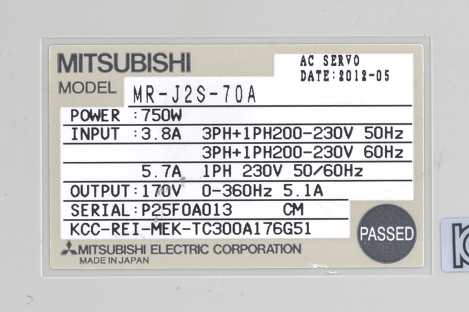 三菱 ACサーボアンプ MR-J2S-70A (電源ON累積時間33942h)