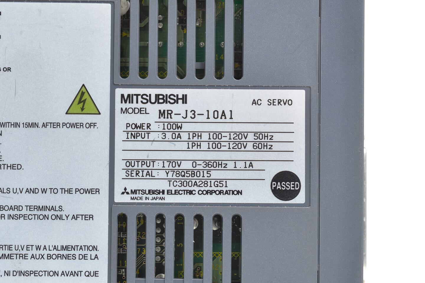 三菱 ACサーボアンプ MR-J3-10A1 (電源ON累積時間1h)