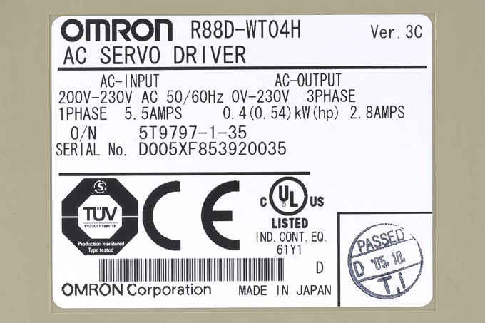 オムロン ACサーボドライバ R88D-WT04H (ソフトVer003C)
