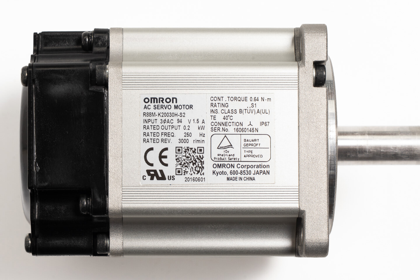 実際に回転させて正常に動作することを確認しています。サーボドライバ(R88D-KT02H)に接続し、正確に位置決め運転ができること、及び、異音や芯ブレがないことを確認しています。