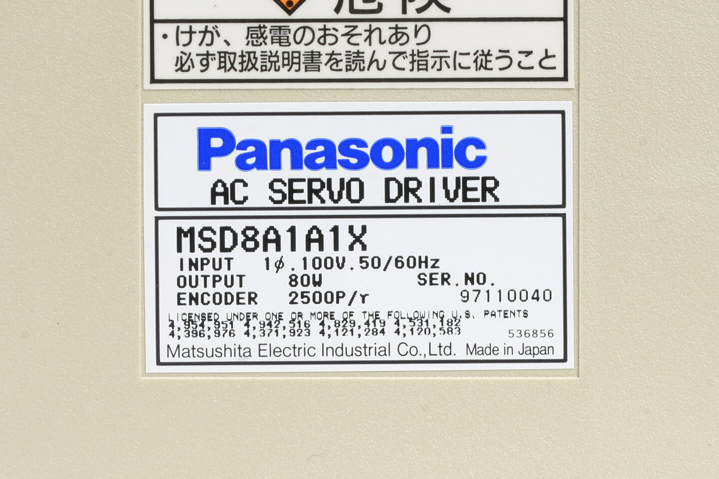 Panasonic MINAS Xシリーズ サーボドライバ MSD8A1A1X (97年製)