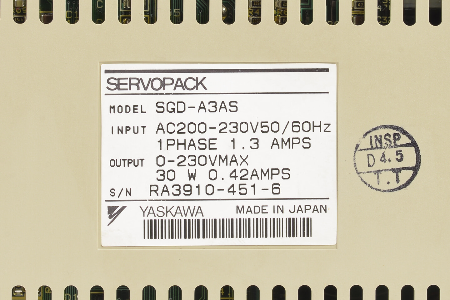安川電機 ACサーボパック SGD-A3AS (ソフトVer006)
