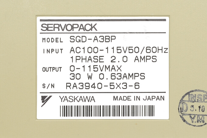安川電機 ACサーボパック SGD-A3BP (ソフトVer006)