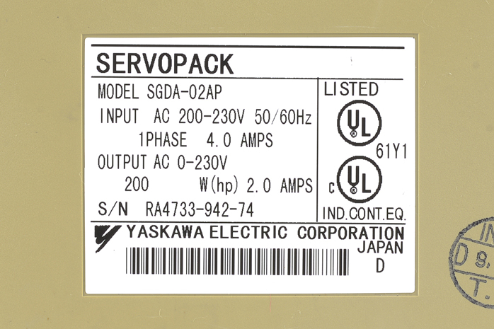 安川電気 ACサーボパック SGDA-02AP (色焼け強め・カバーに欠けあり)