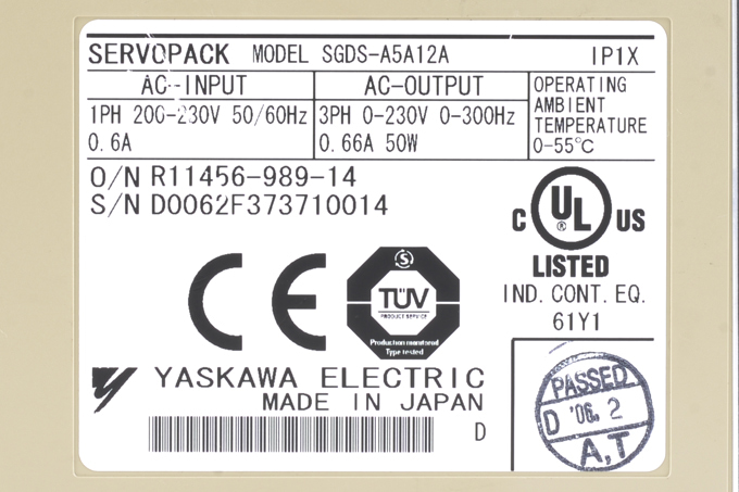 安川電機 ACサーボパック SGDS-A5A12A (ソフトVer0020)
