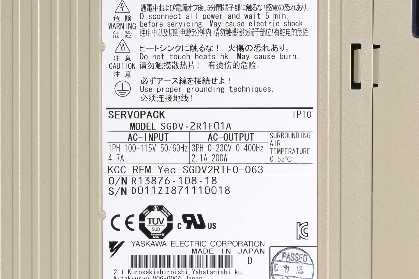 安川電機 ACサーボパック SGDV-2R1F01A (ソフトVer0024)