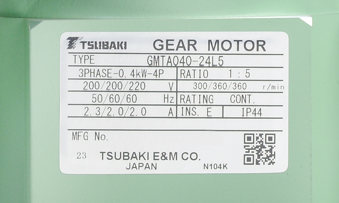 椿本チエイン ギヤモートル GMTA040-24L5