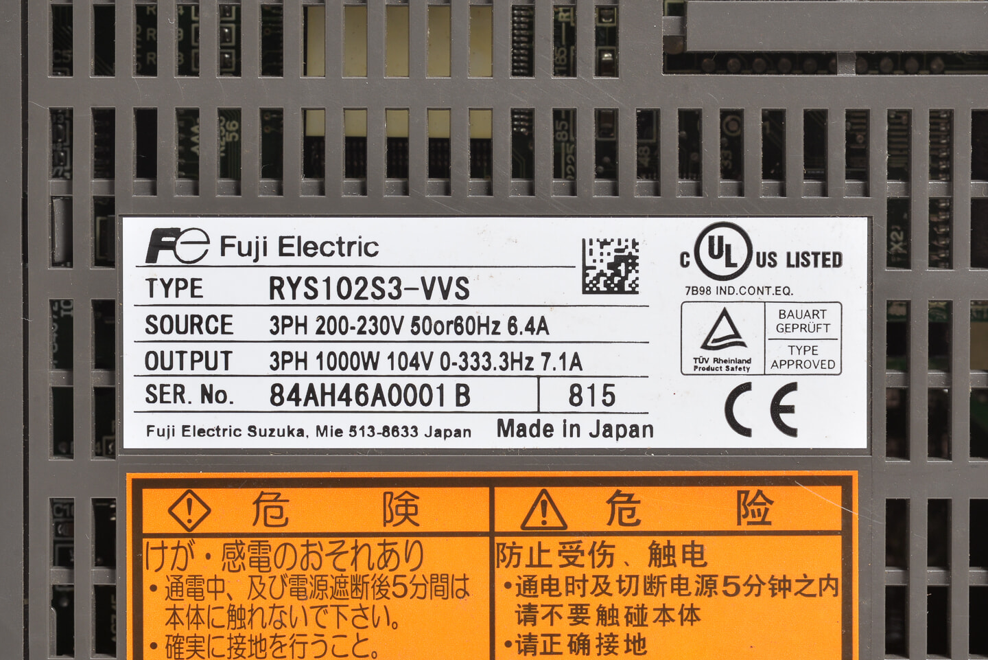富士電機 ACサーボアンプ RYS102S3-VVS