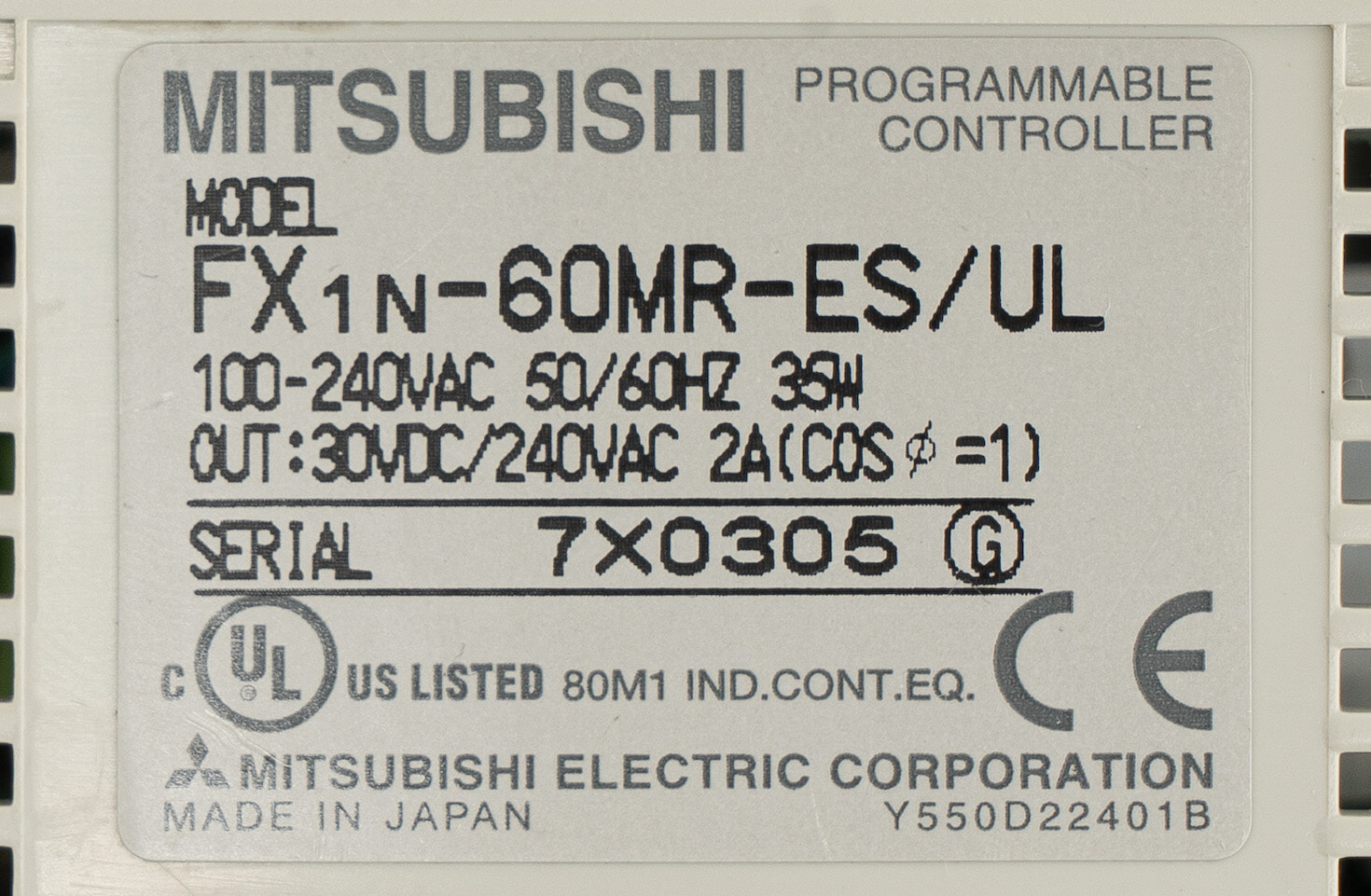 三菱 基本ユニット FX1N-60MR-ES/UL (07年製・割れ)