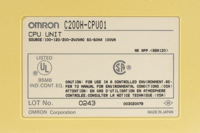 オムロン CPUユニット C200H-CPU01 (93年4月製・割れている箇所が複数)