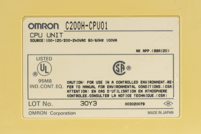 オムロン CPUユニット C200H-CPU01 (92年製)
