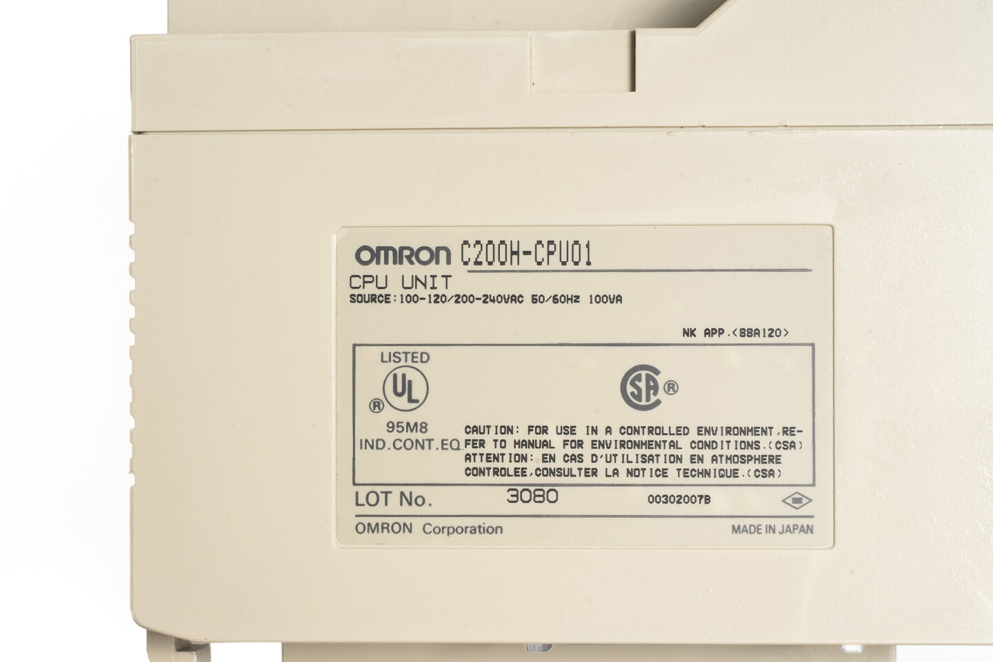 オムロン CPUユニット C200H-CPU01 (89年製)