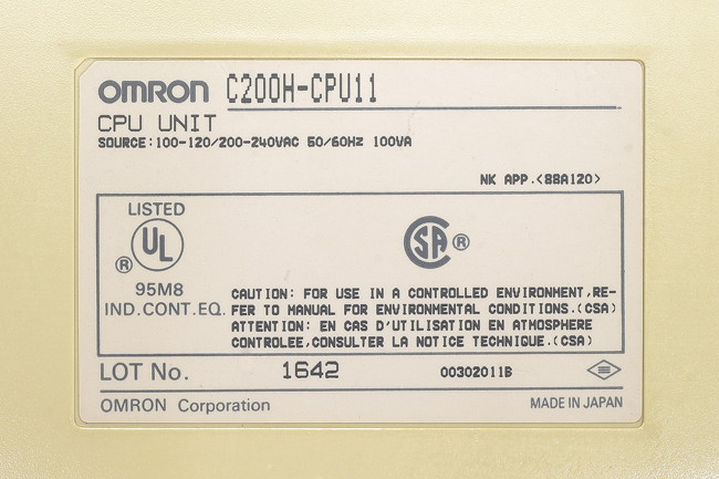 オムロン CPUユニット C200H-CPU11 (92年4月製)