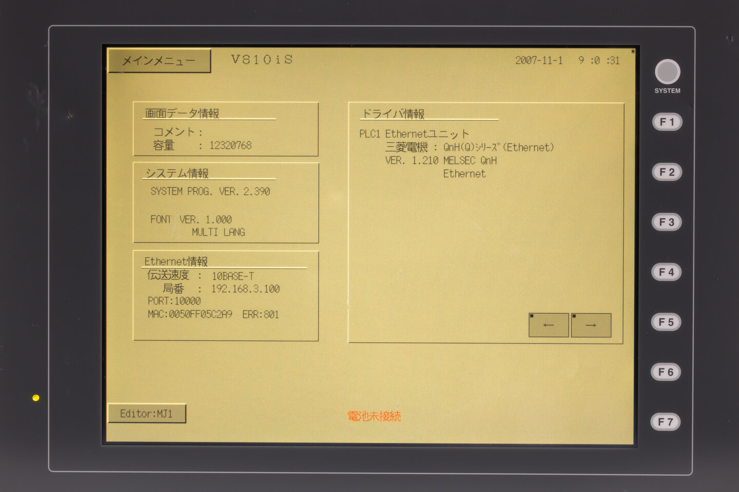 発紘電機 プログラマブル表示器 V810iS (09年製)