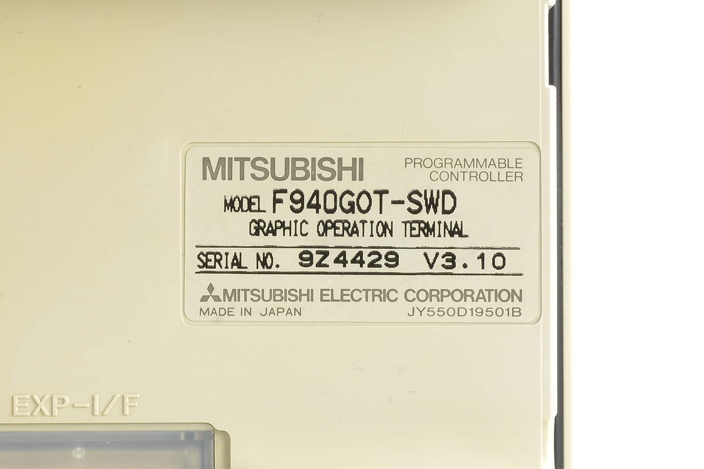 三菱 グラフィックオペレーションターミナル F940GOT-SWD (04年製)